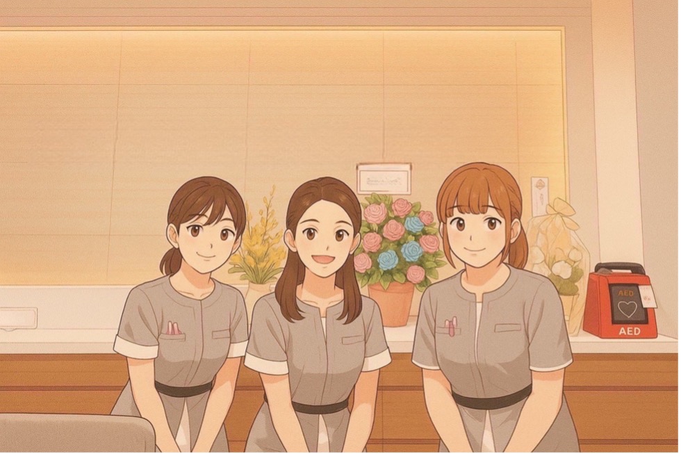 当院には笑顔が明るく素敵なだけでなく、患者さんにホスピタリティを提供できるように経験が豊富な看護師はもちろん、受付、事務員が揃っています。