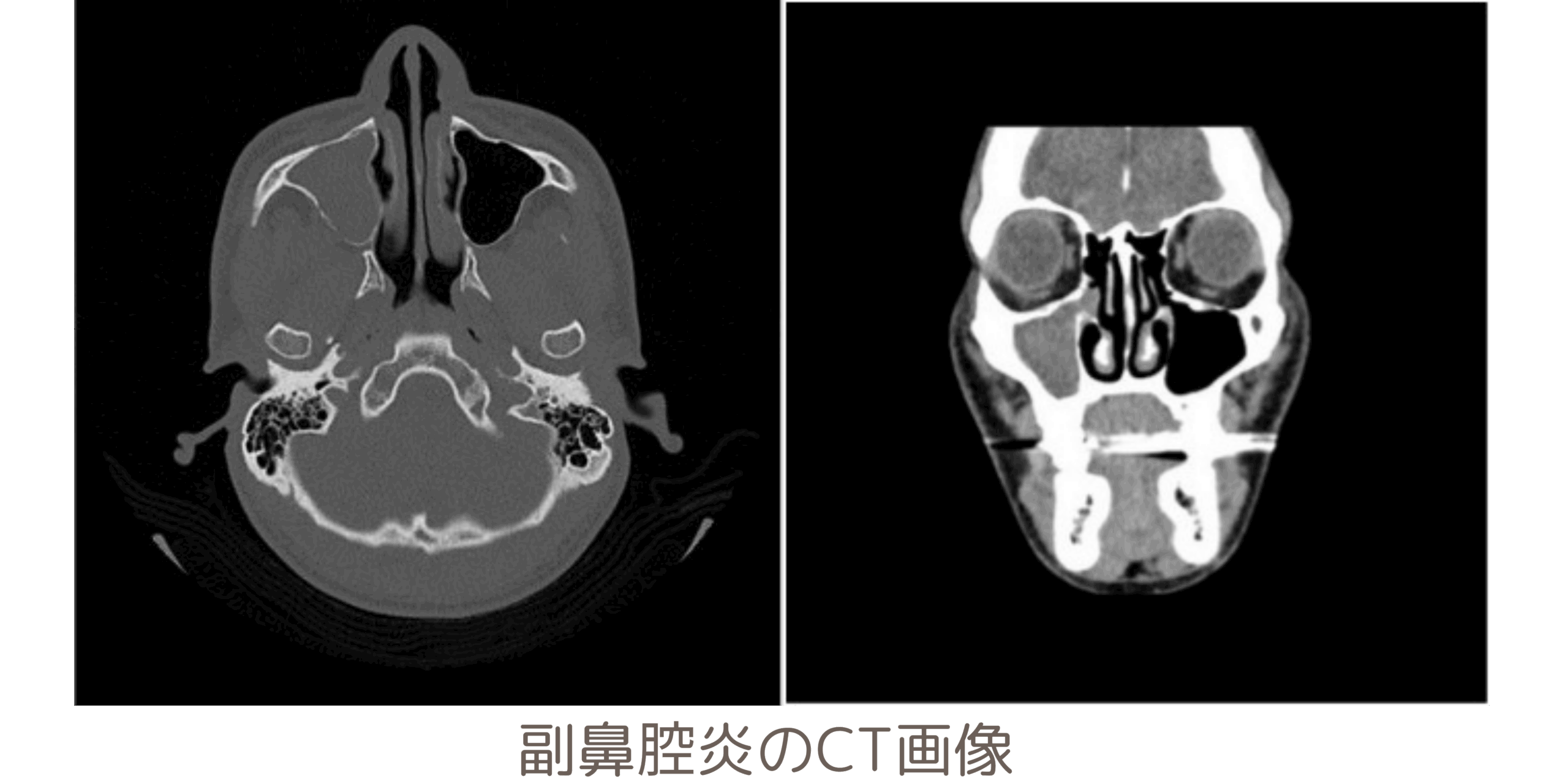 頭部のCT検査では、脳出⾎やくも膜下出⾎などの出⾎を伴う病気や⾻折、副⿐腔炎なども確認できます。