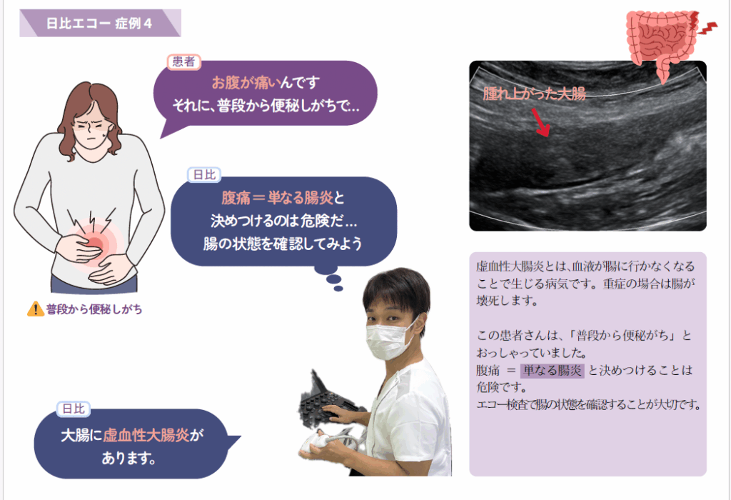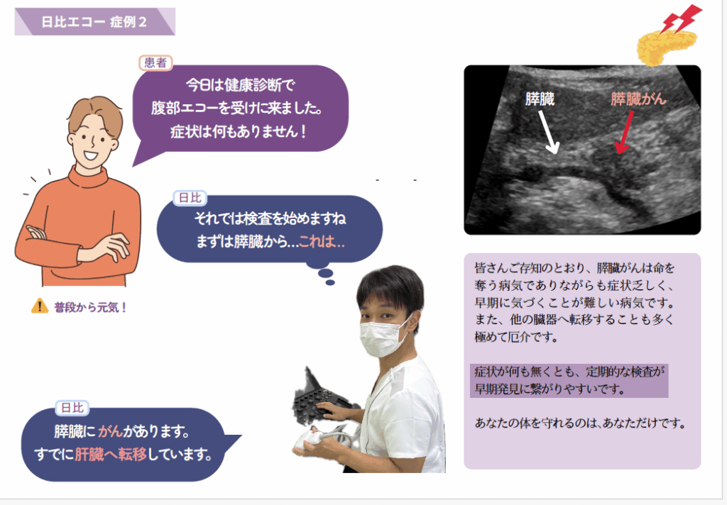 - 検査専用のゼリーを塗って、体に機械を当てるだけなので、痛みもありません。